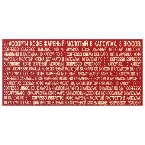 Кофе в капсулах 80 порций "Ассорти 8 вкусов" для Nespresso, COFFESSO, 101741