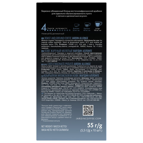 Кофе в капсулах JARDIN "Allonge" для кофемашин Nespresso, 10 порций, 1356-10