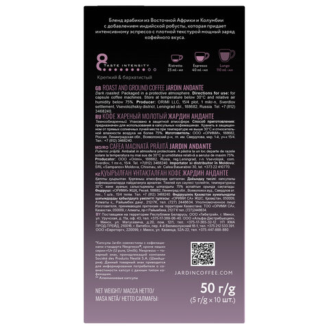 Кофе в капсулах JARDIN "Andante" для кофемашин Nespresso, 10 порций, 1353-10