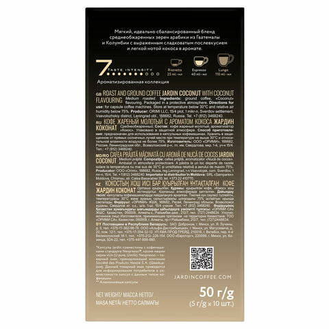 Кофе в капсулах JARDIN "Coconat" – это мягкий, идеально сбалансированный бленд зерен арабики средней обжарки из Гватемалы и Колумбии с выраженным сладковатым послевкусием и легкой нотой кокоса.