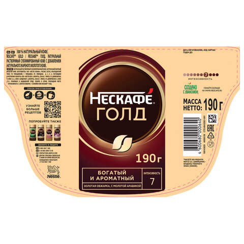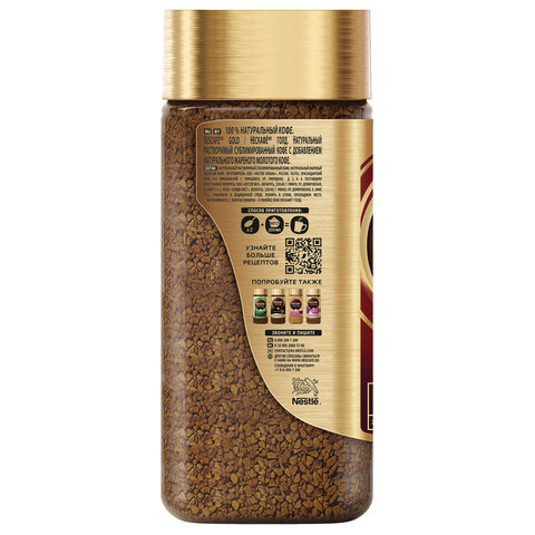 Кофе молотый в растворимом NESCAFE "Gold" 190 г, стеклянная банка, сублимированный, 12135508
