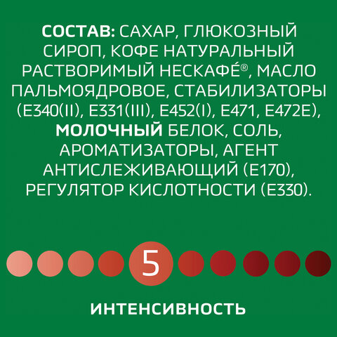 Напиток кофейный растворимый Rich & Creamy создан для того, чтобы вы могли в любых условиях насладиться насыщенным кофейно-сливочным вкусом. В его составе высококачественные ингредиенты: растворимый кофе NESCAFE, сахар и сливки растительного происхождения