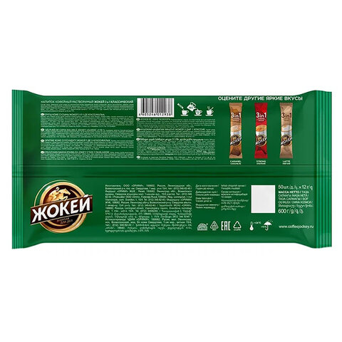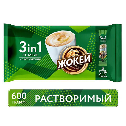 Кофе растворимый порционный ЖОКЕЙ "3 в 1 Классический", КОМПЛЕКТ 50 пакетиков по 12 г, 1293-08-2