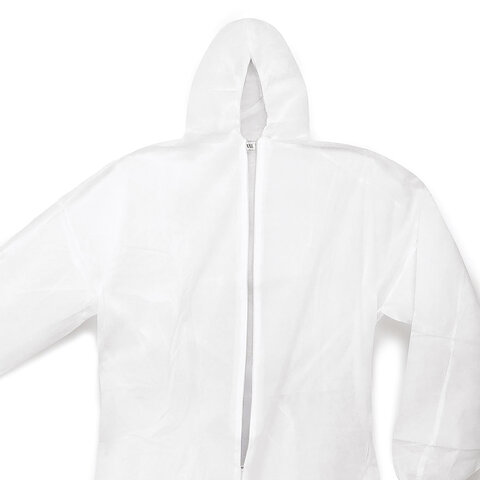 Одноразовый комбинезон из нетканого материала спанбонд с центральной застёжкой на молнию. Рукава и капюшон на резинках, для лучшей защиты от загрязнений рук и головы. Применяются в пищевой, химической промышленности и при работе с красящими веществами.