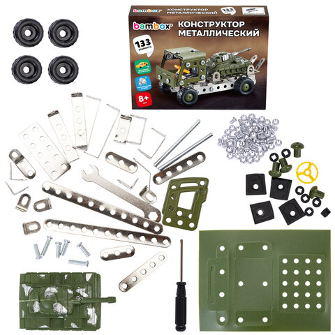 Металлический конструктор BAMBOX "Грузовик с танком" – развивающая игрушка для детей старше 8 лет. Конструктор идеально подходит для домашних игр и занятий на уроках труда. Способствует комплексному развитию ребёнка.