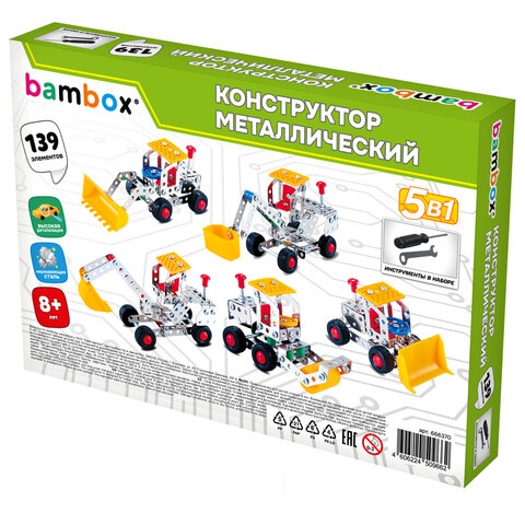 Конструктор металлический "Строительная техника 5 в 1", подвижные детали, 139 элементов, BAMBOX (БАМБОКС), 666370