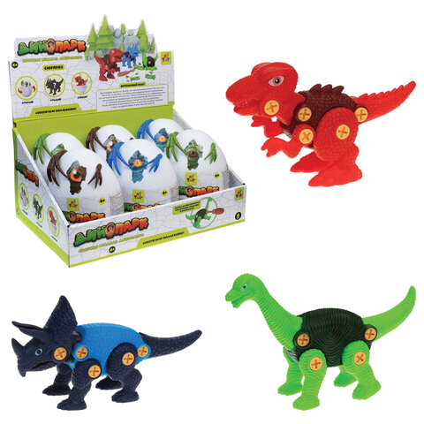 Конструктор пластиковый "Гигантское яйцо с динозавром ДИНОПАРК" АССОРТИ 3 вида, дисплей, 1TOY Т23899