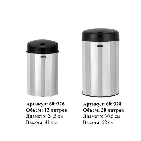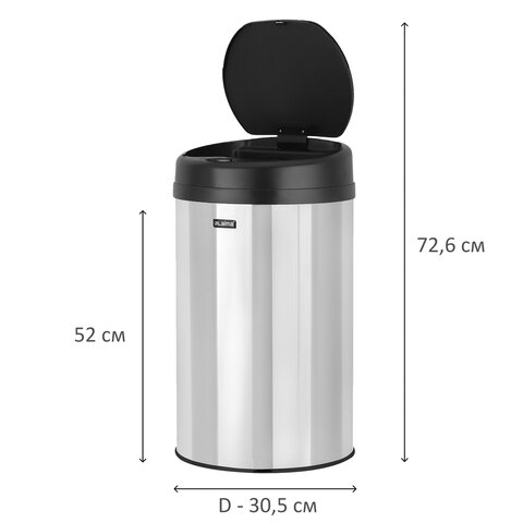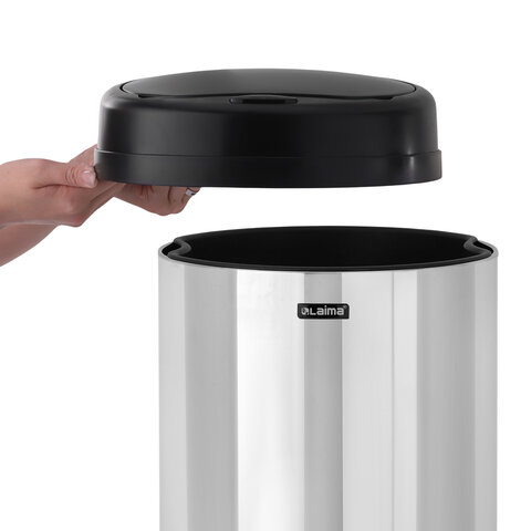 Ведро для мусора СЕНСОРНОЕ 30 л, нержавеющая сталь, черная матовая крышка, питание от 4-х батареек AA (не входят в комплект), LAIMA, 609328