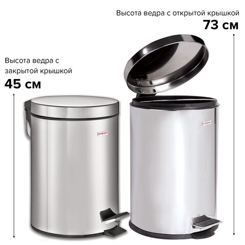 Ведро мусорное с педалью 20 литров "Classic", ЗЕРКАЛЬНОЕ, нержавеющая сталь, со съемным внутренним ведром, LAIMA, 232262