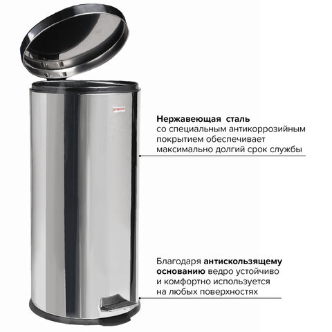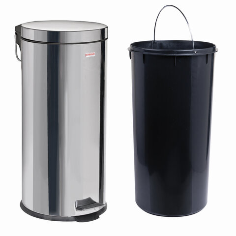 Ведро мусорное с педалью 30 литров "Classic", ЗЕРКАЛЬНОЕ, нержавеющая сталь, со съемным внутренним ведром, LAIMA, 232263