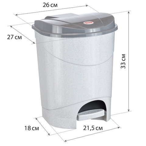 Ведро мусорное с КРЫШКОЙ и ПЕДАЛЬЮ 11 литров, 33х26х27 см, серое, IDEA, М 2891, М2891