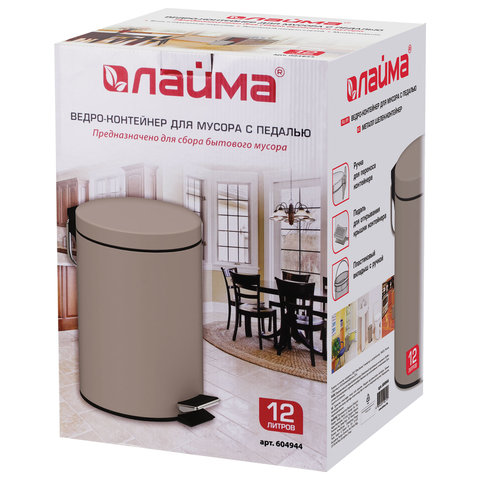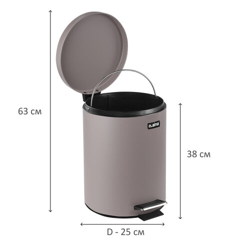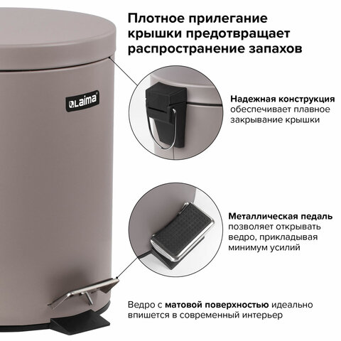 Ведро мусорное с педалью 12 литров "Classic", СЕРОЕ МАТОВОЕ, металлическое, со съемным внутренним ведром, LAIMA, 604944