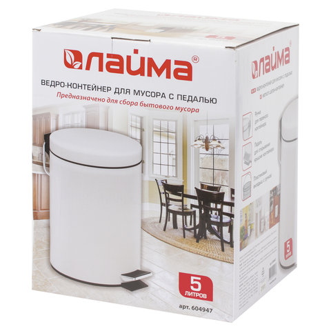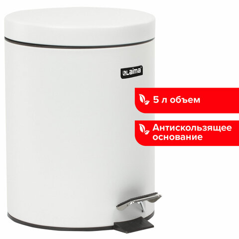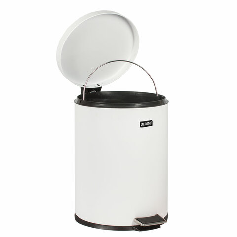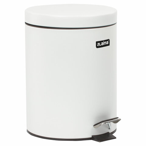 Ведро мусорное с педалью 5 литров "Classic", БЕЛОЕ ГЛЯНЦЕВОЕ, металлическое, со съемным внутренним ведром, LAIMA, 604947
