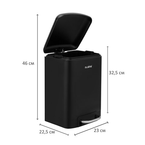Ведро мусорное с педалью 6 л, крышка с доводчиком, черное матовое, металл, LAIMA ULTRA, 701564