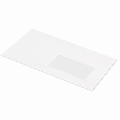 Конверты Е65 (110х220 мм) ПРАВОЕ ОКНО, отрывная лента, 80 г/м2, КОМПЛЕКТ 1000 шт., 41391