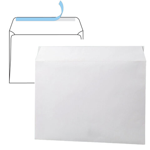 Конверты С4 (229х324 мм), отрывная лента, 100 г/м2, КОМПЛЕКТ 500 шт., внутренняя запечатка, 48927