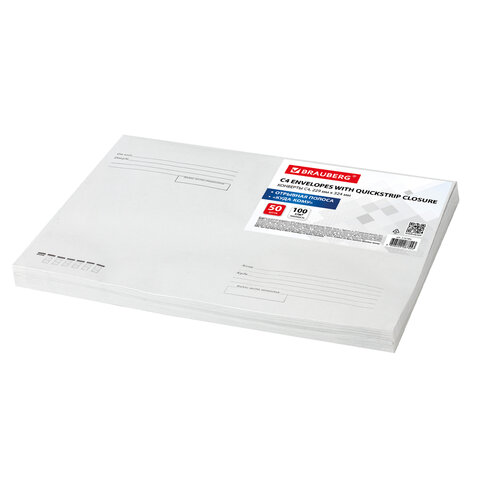 Конверты С4 (229х324 мм), отрывная лента, Куда-Кому, 100 г/м2, КОМПЛЕКТ 50 шт., BRAUBERG, 112185