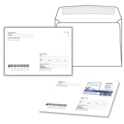 Конверты С5 (162х229 мм) клей, "Куда-Кому", 80 г/м2, КОМПЛЕКТ 50 шт., клапан автомат, внутренняя запечатка, 251.50
