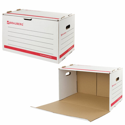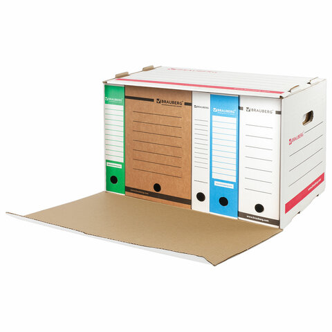 Архивный короб BRAUBERG предназначен для хранения и перевозки документов в накопителях или папках-регистраторах.