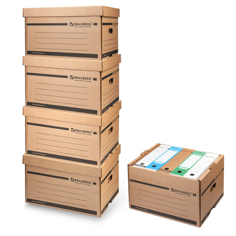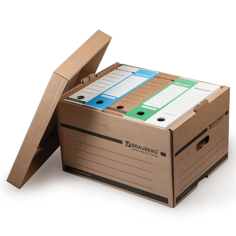 Архивный короб BRAUBERG предназначен для хранения и перевозки документов в накопителях или папках-регистраторах.