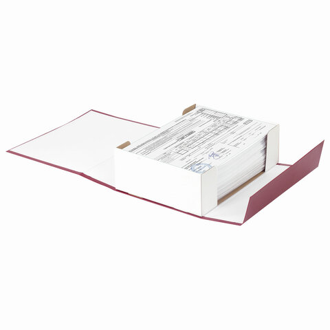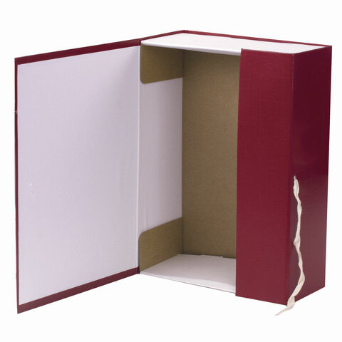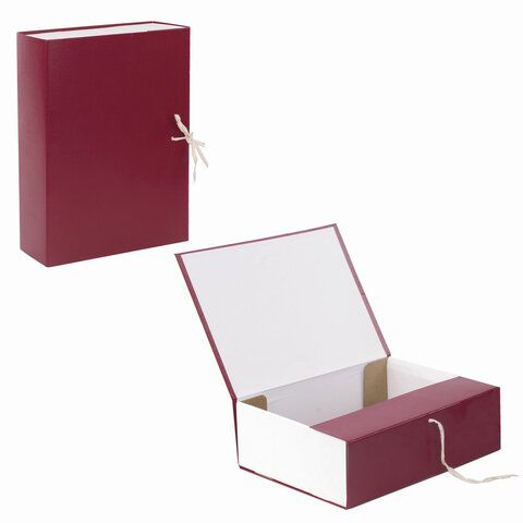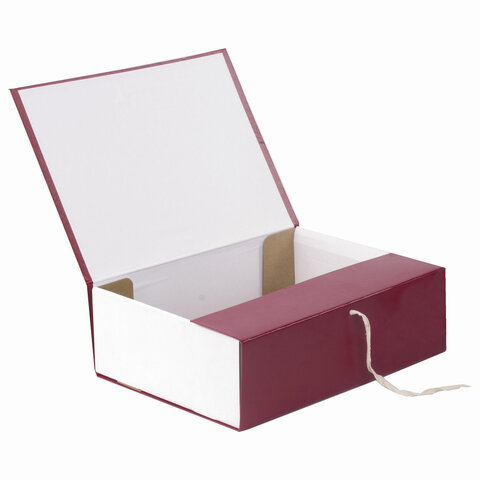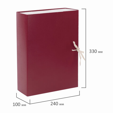 Короб архивный А4 (240х330 мм), 100 мм, 2 завязки, бумвинил, до 900 листов, бордовый, BRAUBERG, 122805