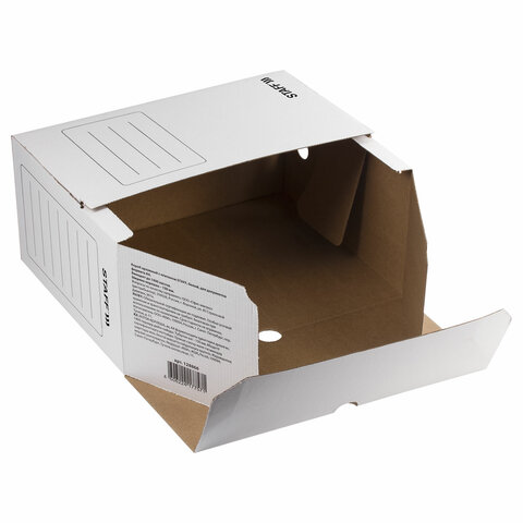 Короб архивный с клапаном А4 (260х325 мм), 150 мм, до 1400 листов, микрогофрокартон, БЕЛЫЙ, STAFF, 128866