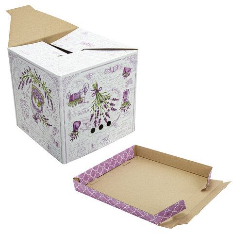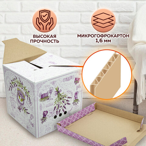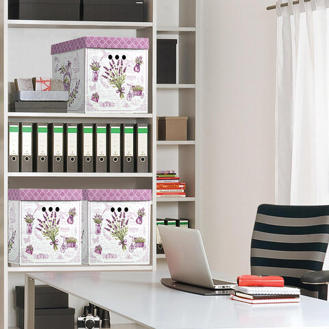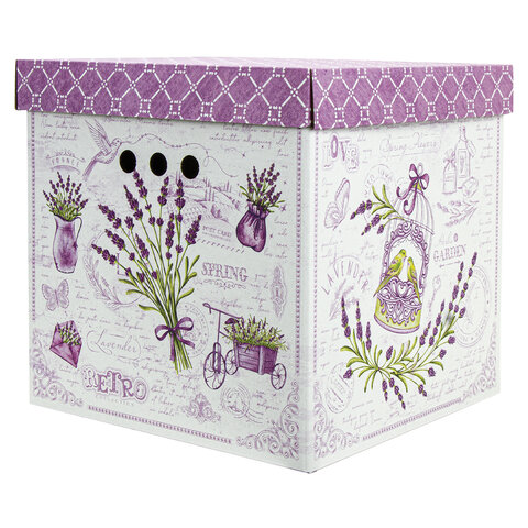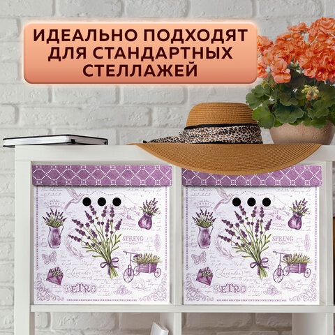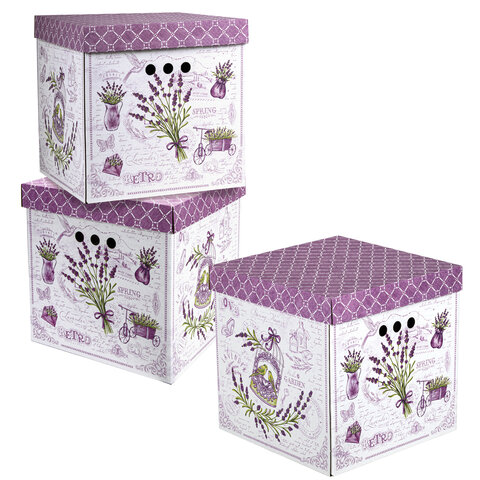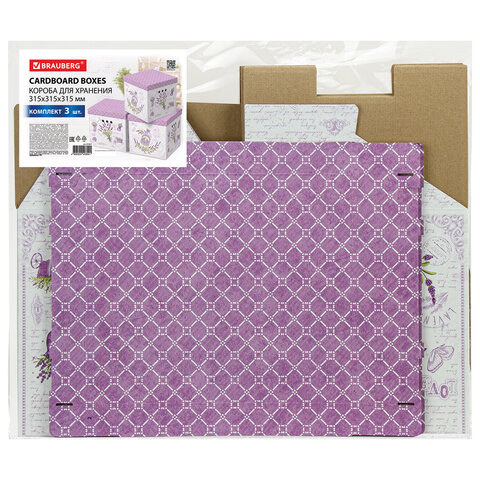 Короб для хранения из плотного микрогофрокартона 315х315х315 мм, КОМПЛЕКТ 3 шт., BRAUBERG HOME "Лаванда", 271817