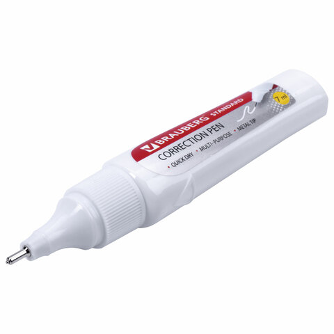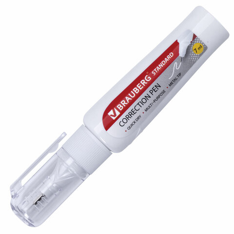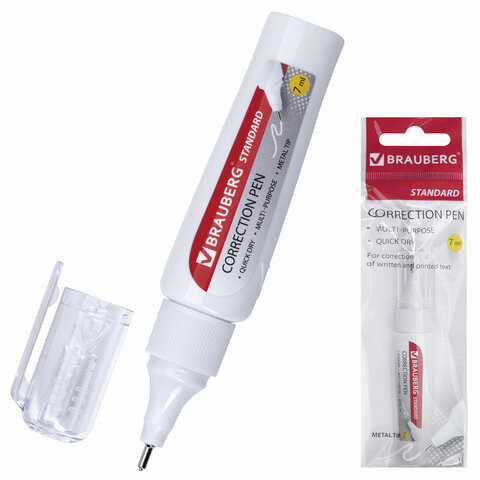 Ручка-корректор BRAUBERG "Standard", 7 мл, металлический наконечник, в упаковке с подвесом, 222058