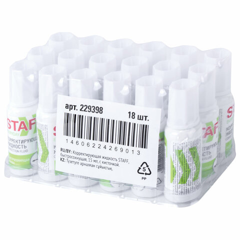 Корректирующая жидкость STAFF "Everyday" обеспечивает аккуратное исправление печатного или рукописного текста. Быстро высыхает и позволяет наносить новые надписи почти сразу.