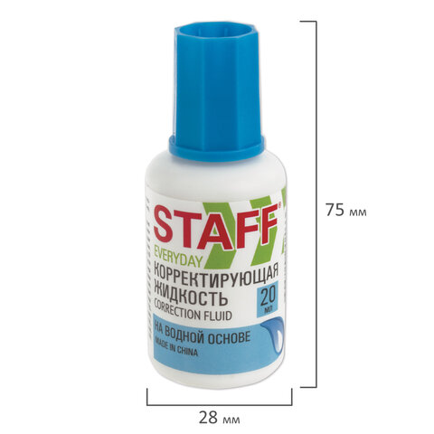 Корректирующая жидкость STAFF "EVERYDAY" на водной основе, 20 мл, с кисточкой, 228642