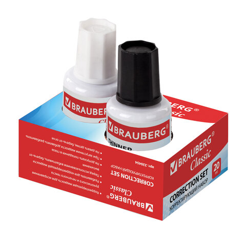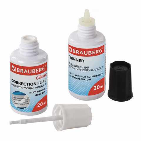 Корректирующий набор BRAUBERG, КОРРЕКТИРУЮЩАЯ ЖИДКОСТЬ + РАЗБАВИТЕЛЬ, 20+20 мл, 220454