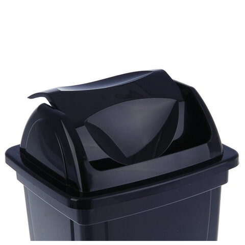Корзина для бумаг, 12 л, цельная, с вращающейся крышкой, черная, КР90