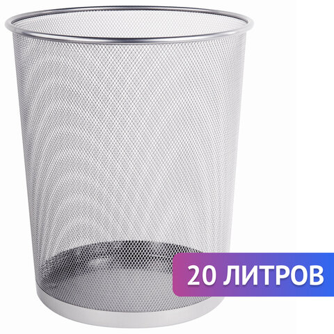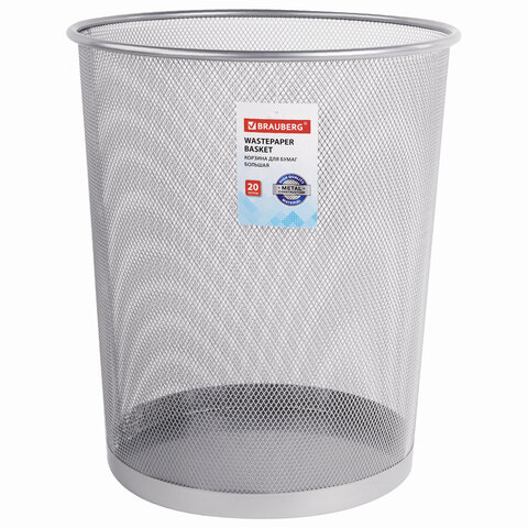 Корзина для бумаг, БОЛЬШАЯ, 20 л, металлическая, серебристая, BRAUBERG "Germanium", 231957