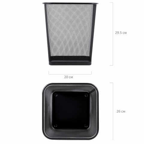 Корзина для бумаг квадратная 17 литров, BRAUBERG "Germanium", металл, черная, 237975