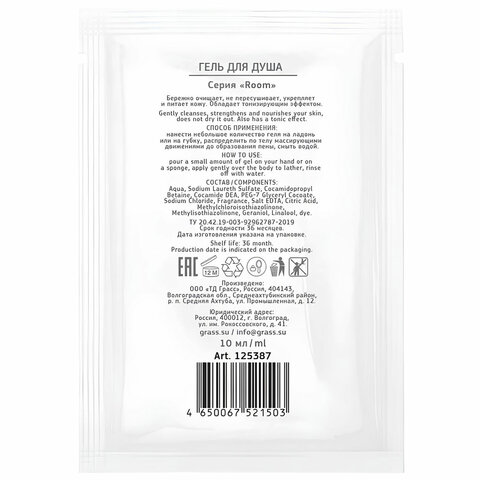 Гель для душа одноразовый 10 мл, КОМПЛЕКТ 500 шт., GRASS ROOM, саше, флоупак, HR-5030