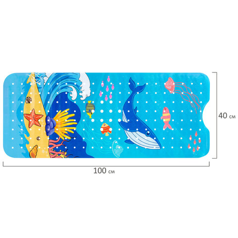 Коврик для ванны противоскользящий 100х40 см, с печатью "Кит", ПВХ, присоски, PRIMILA (ПРИМИЛА), 700377