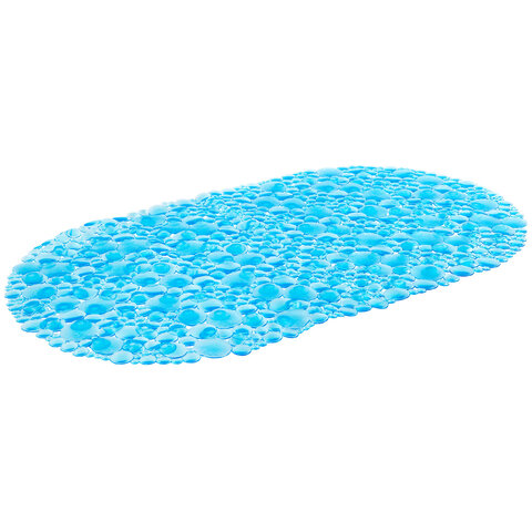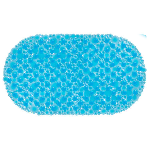 Коврик для ванны противоскользящий 68х37 см, "Пузыри", овальный, прозрачно-голубой, ПВХ, PRIMILA (ПРИМИЛА), 700381