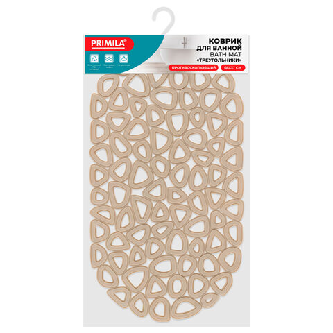 Коврик для ванны противоскользящий 68х37 см, "Треугольники", овальный, бежевый, ПВХ, PRIMILA (ПРИМИЛА), 700380