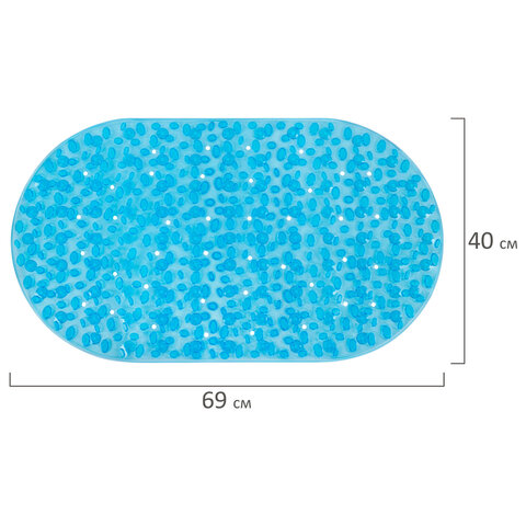 Коврик для ванны противоскользящий 69х40 см, "Камешки", овальный, прозрачно-голубой, ПВХ, PRIMILA (ПРИМИЛА), 700368