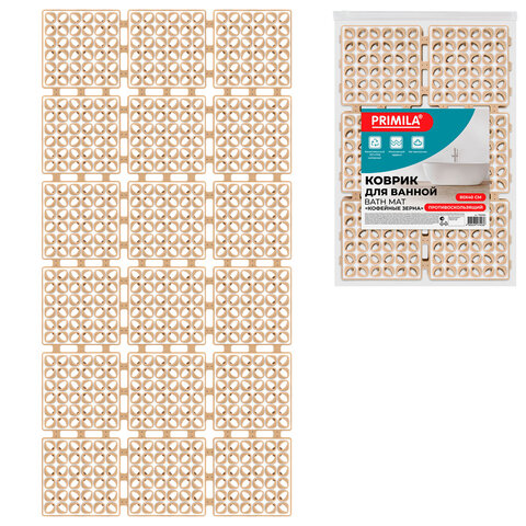 Коврик для ванны противоскользящий износостойкий 80х40 см, "Кофейные зерна", ПП + ТПЭ, PRIMILA (ПРИМИЛА), 700386