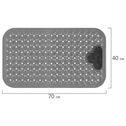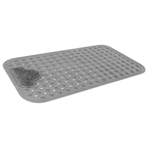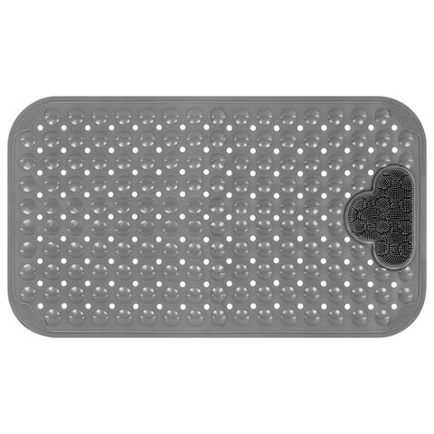 Коврик для ванны противоскользящий с теркой для ступней 70х40 см, серый, ПВХ, присоски, PRIMILA (ПРИМИЛА), 700374