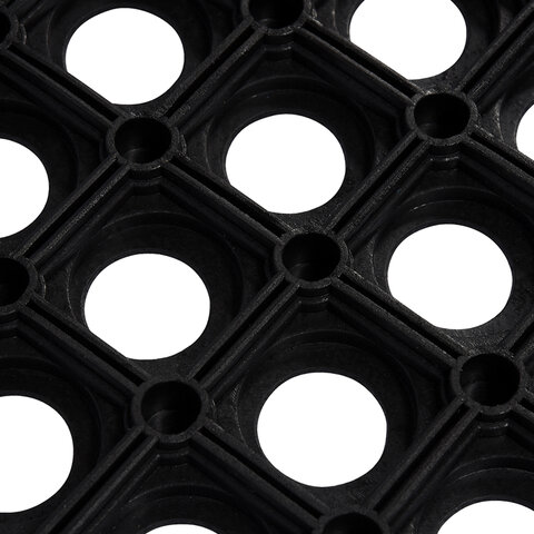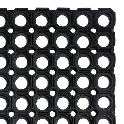 Крупноячеистое резиновое покрытие защищает помещение от уличной грязи.