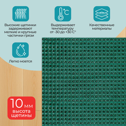 Коврик придверный 45х60 см, ЗЕЛЕНЫЙ пластиковый грязезащитный, толщина 10 мм, "ТРАВКА", PRIMILA (ПРИМИЛА), 701065
