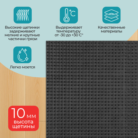 Коврик придверный 60х90 см, ГРАФИТ пластиковый грязезащитный, толщина 10 мм, "ТРАВКА", PRIMILA (ПРИМИЛА), 701068