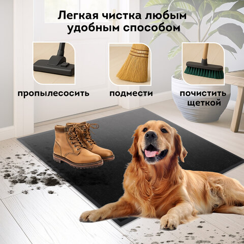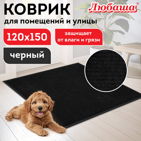 Коврик придверный 120х150 см, ЧЕРНЫЙ, влаго-грязезащитный, 430 г/м2, ребристый, ЛЮБАША СТАНДАРТ, 701040