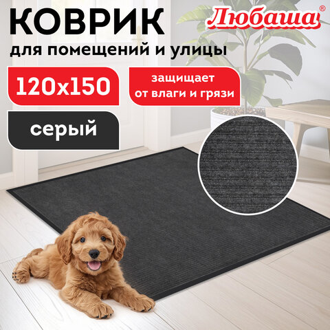 Коврик придверный 120х150 см, СЕРЫЙ, влаго-грязезащитный, 430 г/м2, ребристый, ЛЮБАША СТАНДАРТ, 701041