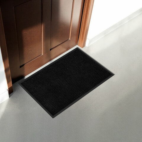 Коврик придверный 60х90 см, ЧЕРНЫЙ, влаго-грязезащитный, 430 г/м2, ребристый, ЛЮБАША СТАНДАРТ, 701034