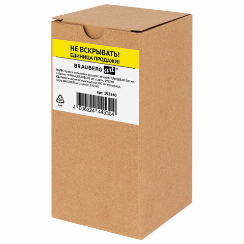 Краска акриловая художественная ГЛЯНЦЕВАЯ черная 500 мл в банке, BRAUBERG ART CLASSIC, 192540