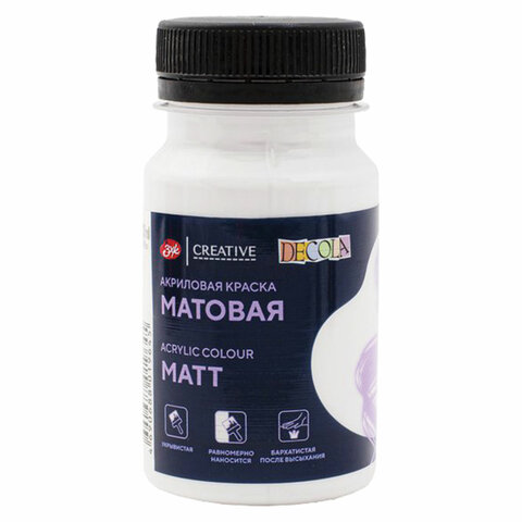 Краска акриловая матовая "Декола", банка 100 мл, белая, Невская Палитра, 14327104