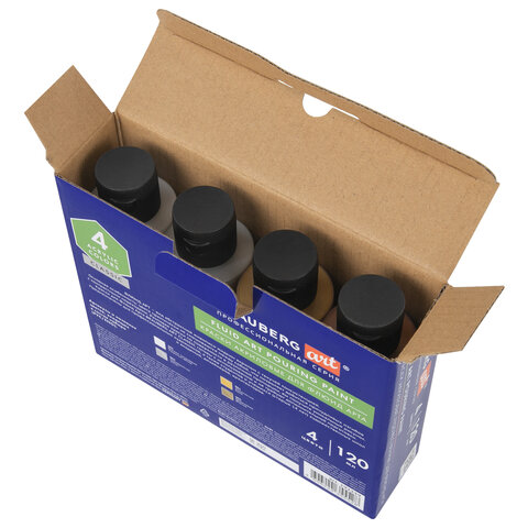 Краски акриловые для техники "Флюид Арт" (POURING PAINT), 4 цвета по 120 мл, Цвета металлик, BRAUBERG ART, 192239